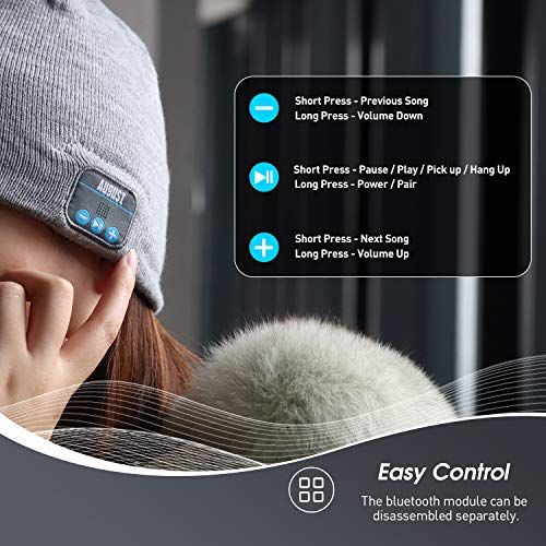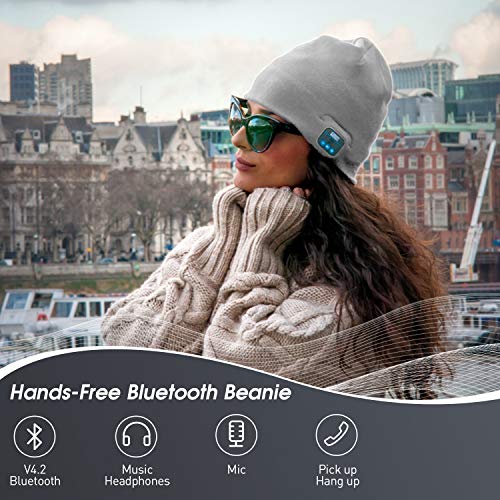August Berretto Bluetooth Uomo Dona Musica Wireless Grigio EPA20 per Telefono con Cuffie Auricolare 5.0 Impermeabile Invernale Ricaricabile Capello Termico a maglia Running Corsa Correre Esercizio