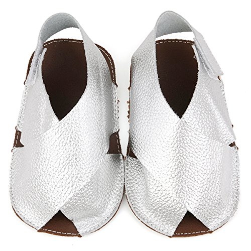 Augusta Baby Soft Sole Leather Infant & Toddler First Walker Sandals - Certified Leather - Silver 3-6 Mo.