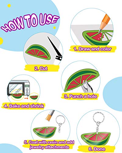 Auihiay 157 pezzi Il kit di plastica termoretraibile include 20 carta termoretraibile, 4 carta da lucido, perforatore, matite e accessori portachiavi per fai da te
