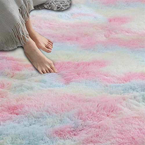 Aujelly - Tappeto in stile Shaggy per camera da letto, morbido, colorato con metodo Batik, 120 x 200 cm, colore: arcobaleno