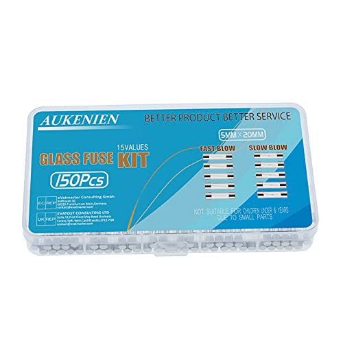 Kit assortimento di fusibili in vetro a soffiato lento & fusione rapida 5x20mm di alta qualità AUKENIEN.