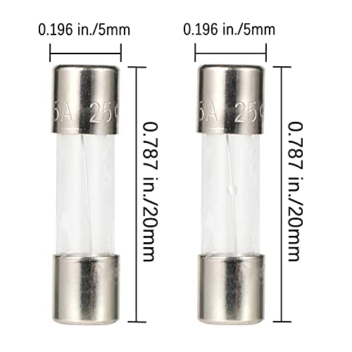 Dimensione del fusibile di vetro: 5x20mm / 0.2x0.78 pollici.