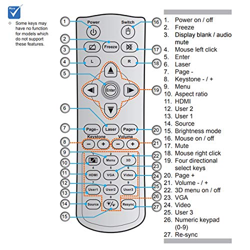 AuKing Telecomando di Ricambio per Optoma Proiettore EH319UST EH320UST EH330UST EH341 EH415e W415e EH415ST EH416 EH490 EH504 EH512 W319UST W320UST W330UST W412 W416 W512 WU416 X416 W316ST X316ST W351