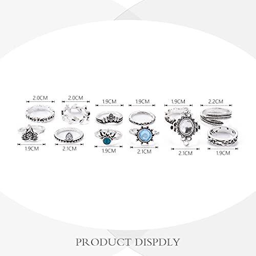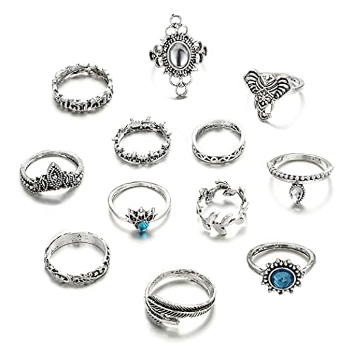 Aukmla - Set di anelli per nocche in argento con elefante, impilabili, in cristallo, misura media, per donne e ragazze, 12 pezzi