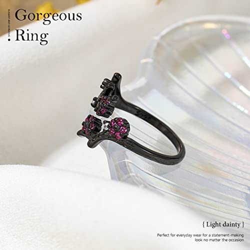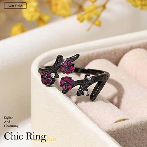 Aukmla Anelli vintage con zirconi neri gotici anelli regolabili aperti anello cristallo albero foglia anello per donne e ragazze