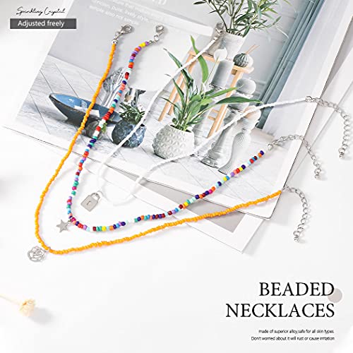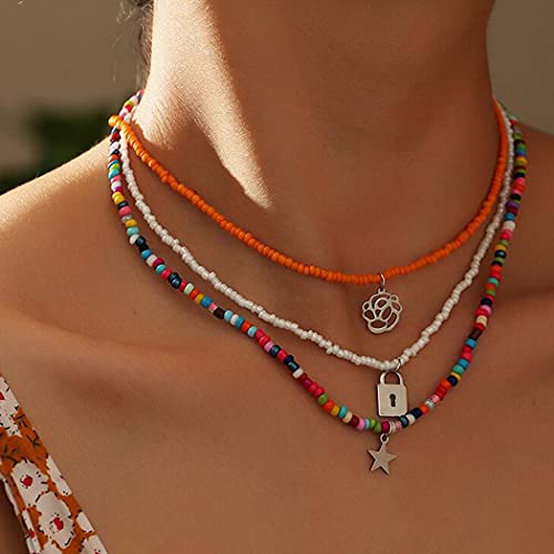 Aukmla - Collana girocollo con ciondolo a forma di stella, in argento, con perline colorate, accessori per donne e ragazze