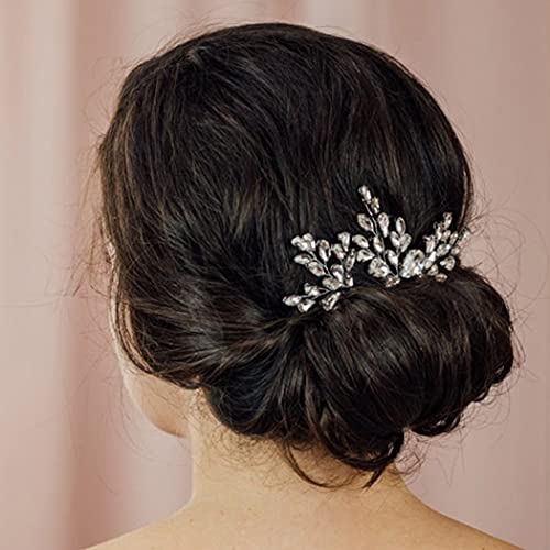 Aukmla - Forcine per capelli, accessori da sposa, in argento, con cristalli, per donne e ragazze (confezione da 3)