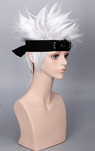 Aukmla parrucca Naruto Hatake Kakashi Cosplay parrucca corta argenteo bianco capelli lisci