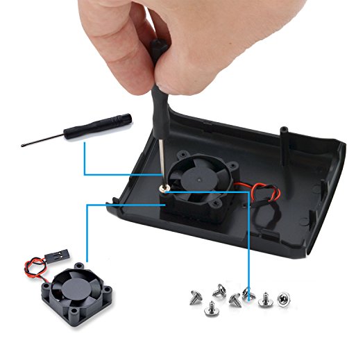 Aukru Caricabatterie con cavo micro USB 5V 3A, interruttore, dissipatore di calore e mini ventola per Raspberry Pi 3 Modello B, B + nero