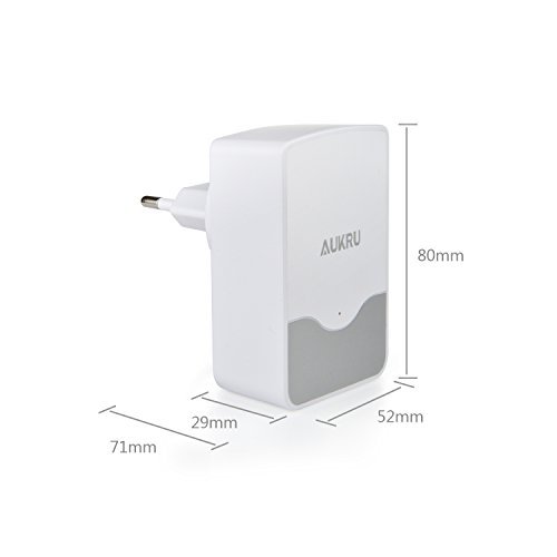 Aukru Caricatore USB da Muro 4 Porte 5V 4.4A Con Cavo Micro USB per iPhone XR/XS Max/X/8 Plus/8, iPad,Samsung Galaxy S9+/S8 /Huawei P30/P20/HTC/LG ecc(Bianco)