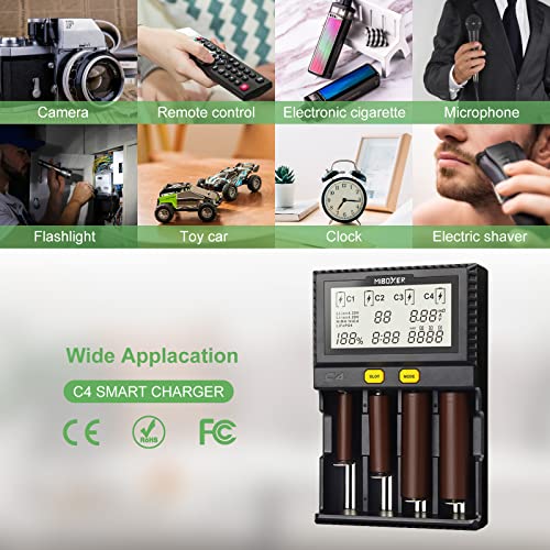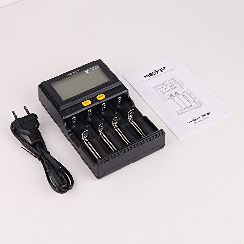 AUKSKY 18650 Caricabatterie, Caricabatterie Intelligente Universale con Display LCD per Batterie NI-MH, NI-Cd, AA, AAA, 14500, 18350, 21700, 26650, Li-Ion LiFePO4, RCR123A (4 Slot)