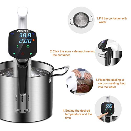 AUKUYEE Sous Vide,slow cooker per Cottura a Bassa Temperatura 1000 Watt, Circolatore ad immersione termica con ricettario Sous Vide