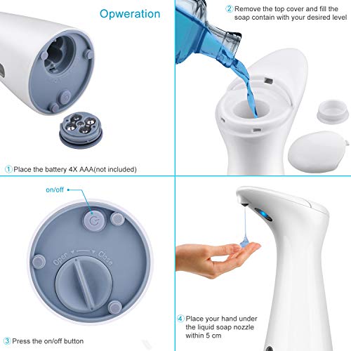 AUKUYEE Dispenser di Sapone Automatico,Distributore Automatico di Sapone,Dispenser Sapone Liquido per Cucina, Bagno (Bianca)