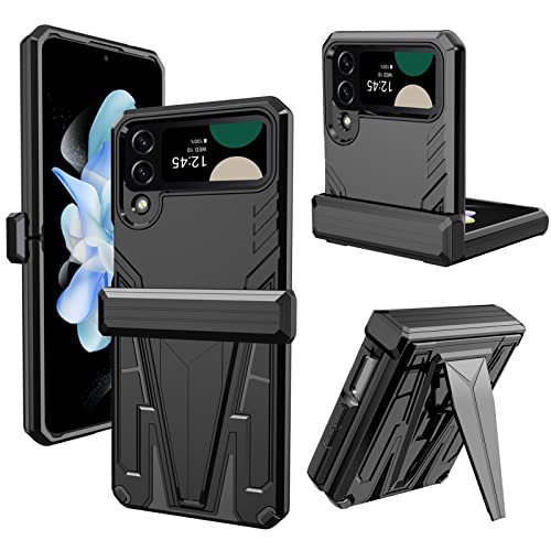 Aukvite Custodia per Samsung Z Flip 4, TPU + PC Hybrid Armor Custodia Protettiva Antiurto Resistente ai Graffi con Supporto, Cover per Samsung Galaxy Z Flip 4 5G, Cover Protettiva Antiscivolo (Nero)