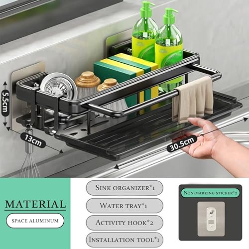 【Materiale Affidabile】Porta spugna cucina lavello in alluminio di alta qualità, che è sicuro, durevole, anticorrosivo e antiruggine. Quindi questo mensola deve essere una buona scelta per l'uso a lungo termine anche in condizioni di bagnato