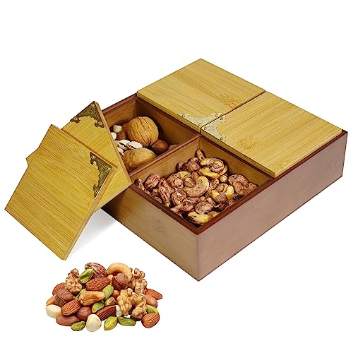 Piatto per snack con scomparti: la nostra ciotola per snack dispone di 4 scomparti singoli per diversi tipi di alimenti. Può contenere tutti i tipi di cibo, frutta secca, semi di melone, snack, caramelle o noci, ecc.