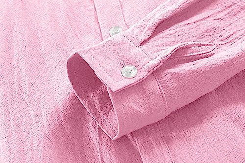 AUMELR Camicie da uomo in lino casual con bottoni Henley Camicie in cotone estivo da spiaggia camicia da nonno, rosa, L