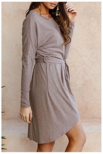Aumir Vestito e Orlo Assimmetrico Donna Manica Lunga Rotondo Collo Casual Abito