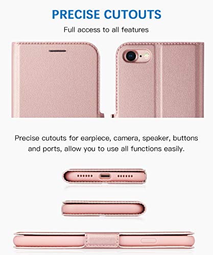 Aunote Cover per iPhone SE 2022/7/8/SE 2020, Custodia iPhone 8 Portafoglio, Cover iPhone 8 Libro, Flip Case con [Supporto] [Carta Fessura] [Magnetica] per Apple 7/8/SE 2/SE 3 2022 5G. Oro Rosa