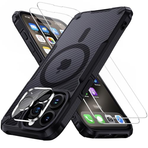 Aunote Cover per iPhone 15 Pro Max Magsafe, Custodia Militare Ultra Magnetica Antiurto Protezione Completa a 360° Custodia Cover con Protezione per Schermo e Fotocamera, Nero