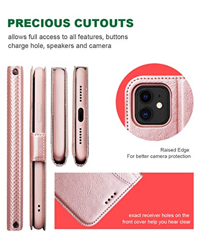 Custodia a libro per iPhone 11 con fessure e supporto in ecopelle molto leggera, compatibile con Apple iPhone 11 da 6,1 pollici, protezione a 360 gradi per il tuo smartphone. Il oro rosa è amato dalle donne.