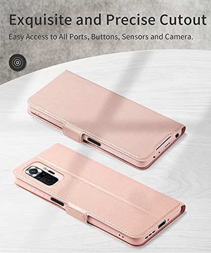 Aunote Cover per Xiaomi Redmi Note 10 Pro/Note 10 Pro Max Libro, Custodia Redmi Note 10 Pro Portafoglio, Flip/Folio Case con [Supporto] [Carta Fessura] [Magnetica], Oro Rosa