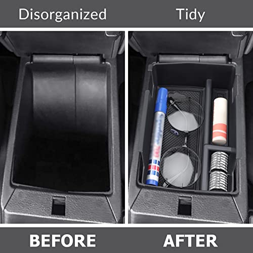 Materiale di qualità: realizzato in plastica ABS di alta qualità, resistente e utile. Nessun tappetino antiscivolo impedisce agli oggetti di scivolare nello scomparto.