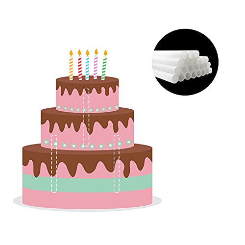 Materiale di qualità: borchie per torte è realizzato in plastica ABS di alta qualità alimentare. È resistente e può sopportare torte multistrato. È atossico e insapore ed è innocuo per la torta e il corpo umano. Può essere riutilizzato e ha una lunga durata. È più facile da tagliare rispetto al bastone per torta in legno e non è facile da rompere.