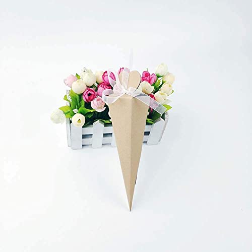 Auped 100 PZ Scatola di Caramelle a Cono Viene Fornito con Nastro Colore della Carta Kraft per Scatola scatolina bomboniere segnaposto per Compleann, Battesimo, Comunione, Nascita, Laurea, Natale