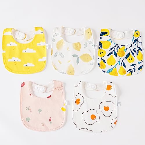 AUPOWER Bavaglini Neonato, 5 Pezzi Bavaglino Neonato Impermeabile con 5 colori diversi, Bavaglini Cotone Panno per Ruttino Drool Dentizione Pappa Bambino.-04