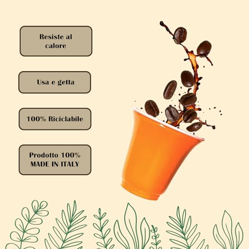 450 bicchierini colorati in plastica alimentare confezionati in busta sigillata, disponibili nel classico colore verde, giallo, rosa, azzurro, rosso, arancione, nero, fucsia, modello Borbone