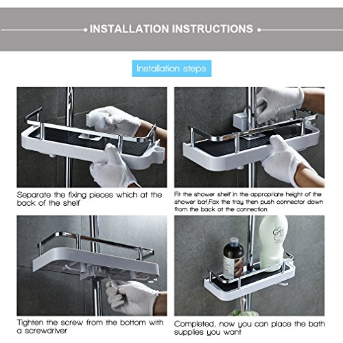 Mensola da bagno doccia caddy è adatto per diametro foro di montaggio: 24mm tubi doccia regolando la tenuta del fondo a vite,per regolare l' altezza in base alle vostre esigenze per vasca da bagno, comodo e pratico.