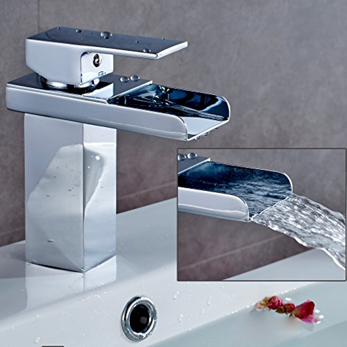 Auralum Miscelatore Rubinetto Lavandino del Bagno a Cascata Manopola per Stabilire l'acqua calda o l'acqua Fredda