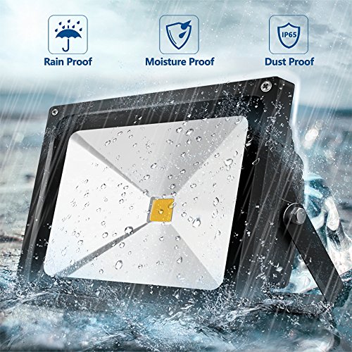 Auralum Proiettore LED 50W Impermeabile IP65 Bianco Caldo COB LED Proiettore di Luce Lampada Luce Nero