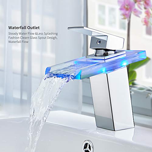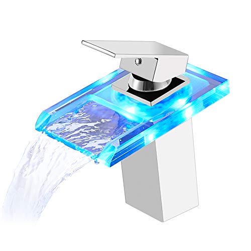 Auralum Rubinetti Lavabo Bagno Miscelatore Monocomando con LED,Adatto Per Lavabi e Bagni(Piazza)