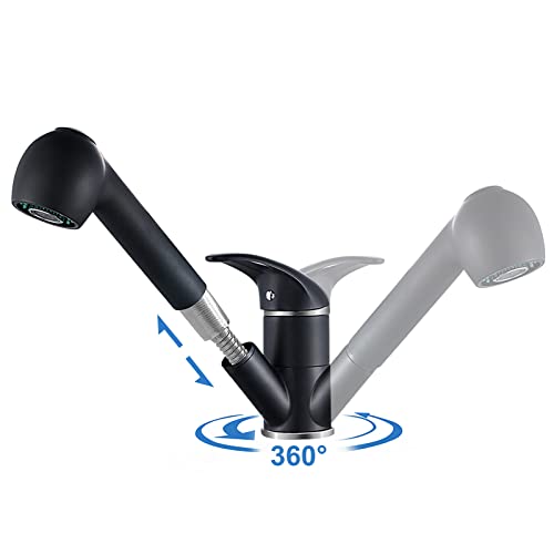 Auralum Rubinetto Cucina Nero con Doccetta Estraibile Miscelatore Monocomando con Doppio Getto Girevole a 360 ° per Lavello Cucina