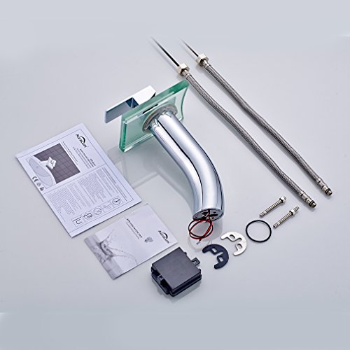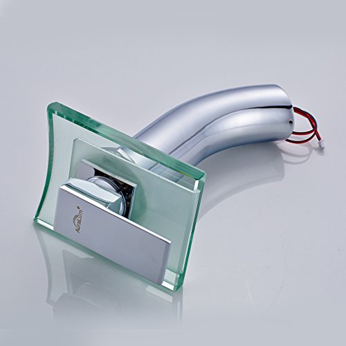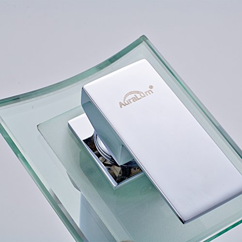LED RGB Auralum Rubinetto di Lavabo di Vetro Rubinetto di Bagno di Trapezio Miscelatore Monocomando a Cascata Rubinetto di Bacino con Bocca Alta