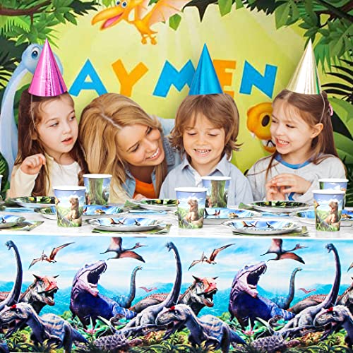 Aurasky Dinosauri Stoviglie per Bambini, 51 Pezzi Dinosauro Piatti e Bicchieri Carta per Feste per Compleanni dei Bambini, Feste a Tema- 20 Piatti, 10 Tazze, 20 Tovaglioli, 1 Tovaglia