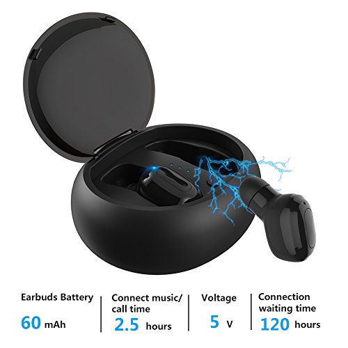 ♪Lungo Tempo di Funziona♪ Batteria a polimeri ricaricabile ad alte prestazioni da 60 mAh, goditi circa 2.5 ore di tempo di conversazione / riproduzione di alta qualità. La base di ricarica intelligente è come una banca di energia con una capacità di 650mAh, in grado di supportare 4-5 volte la ricarica completa per le cuffie bluetooth.