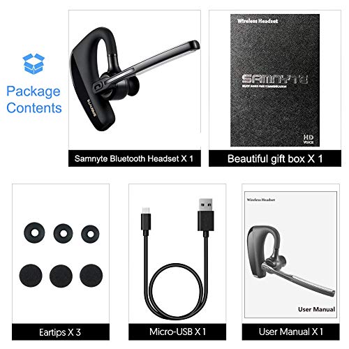 【Qualità Audio Hi-Fi】 Auricolare Bluetooth Samnyte con microfono HD incorporato e cancellazione del rumore CVC6.0 e anabbaglianti ANC (Ambient noise canceling). assicura audio stereo Hi-Fi. Consentono di ottenere una qualità elevata e una voce chiara anche in ambienti rumorosi come (guida, strada, centri commerciali)