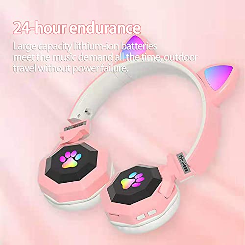 Auricolare Bluetooth, carino gatto orecchie LED illuminato pieghevole auricolare con microfono, adatto per bambini regali/scuola/computer portatile/PC