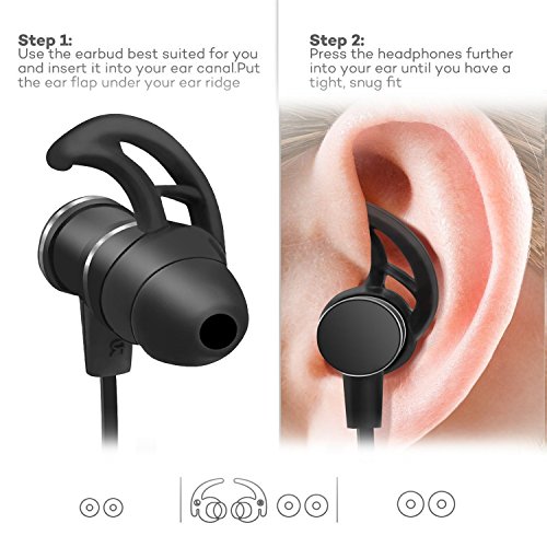 Auricolare Bluetooth, cuffie senza fili di esecuzione (design creativo) Loutsbe Neckband cuffie ritrattabili stereo cuffie CVC6.0 Cancellare il rumore di sport Bluetooth con microfono (NERO)