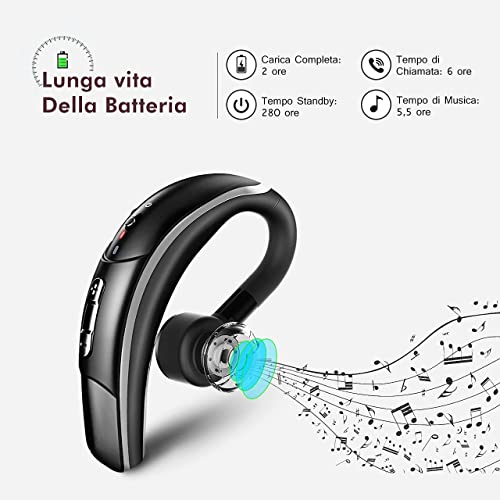 Auricolare Bluetooth 4.1 con CVC 6.0 Microfono, CSR Chip e Catturare Voce Chiara, 4 Tasti, Cuffia Bluetooth Senza Fili Regolabile 180°