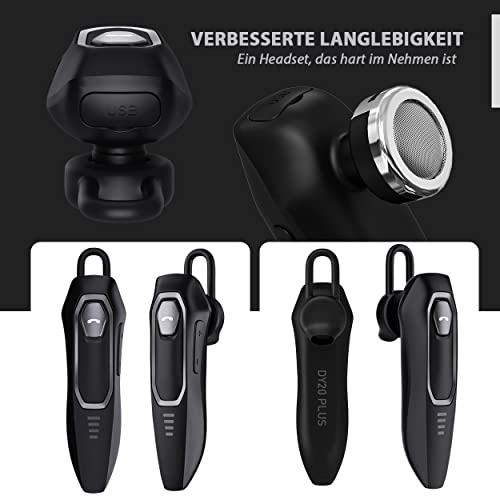 Portata wireless fino a 50 metri: l'auricolare Bluetooth DY20-PLUS si collega a due dispositivi mobili che supportano contemporaneamente il Bluetooth e risponde a tutte le chiamate a mani libere. La portata radio del dispositivo accoppiato è fino a 50 metri. È possibile lasciare il telefono in auto e assicurarsi che la connessione sia normale. In questo modo è possibile continuare a lavorare liberamente senza dover portare il telefono o il tablet.