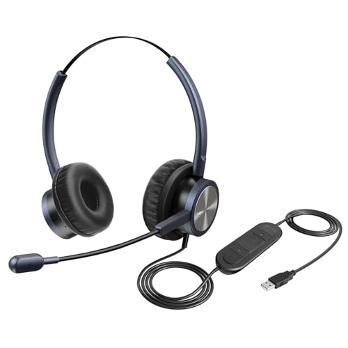 Auricolare USB per computer con tecnologia Nuance Dragon Dictation Skype con microfono a cancellazione del rumore, per computer, softphone, conferenze, riunioni con zoom, Microsoft Teams, Face Times.