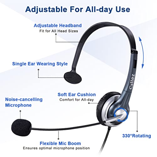 Comode cuffie da 2,5 mm con archetto regolabile per tutte le dimensioni della testa, braccio flessibile per microfono per soddisfare le vostre esigenze, cuscinetti auricolari morbidi e di alta qualità aumentano il comfort per tutto il giorno.