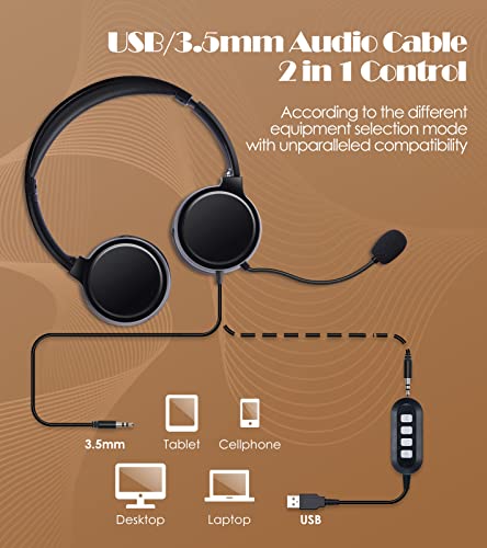 Auricolare USB con Microfono, Auricolare con Microfono a Cancellazione di Rumore, Auricolare per PC Cablato, Cavo Audio da 3,5 mm/Adattatore USB, Controllo Cablato, per Skype, Riunioni di Lavoro