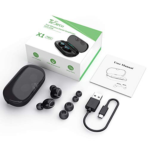 Auricolari Bluetooth 5.0 Cuffie Senza Fili,TESECU Auricolari Wireless Bluetooth 3000mAh Custodia Ricarica TWS Stereo con Mic Cancellazione del Rumore Auricolari Sport per iOS/Android/iPad