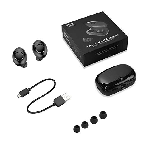 Auricolari Bluetooth, Cuffie Wireless Auricolare Bluetooth HD Stereo Sound Casques de Jumelage Faciles Avec étui de Chargement de 500 mAh pour IOS et Android - Noir