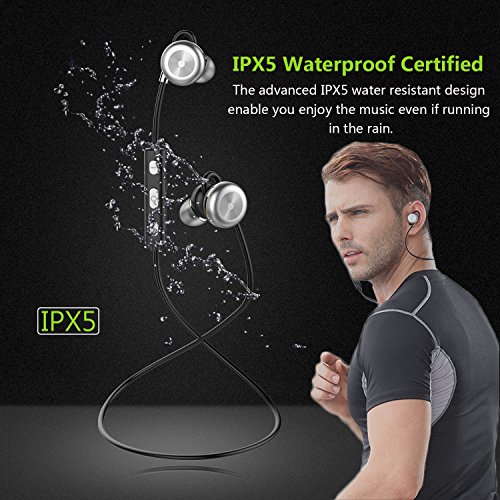 BARA, Auricolari X9, Bluetooth, magnetici, cuffie Bluetooth 4.1, in-ear, sportive, wireless argento